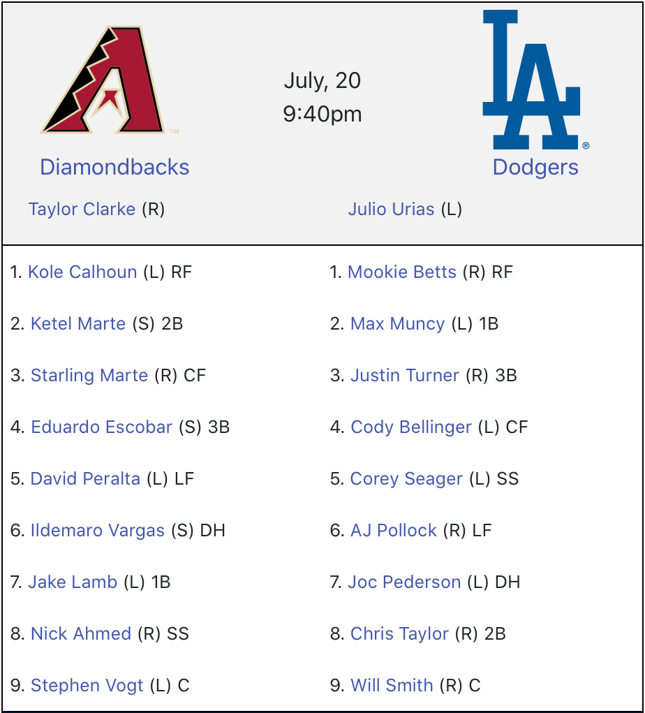 Arizona Diamondbacks vs Los Angeles Dodgers